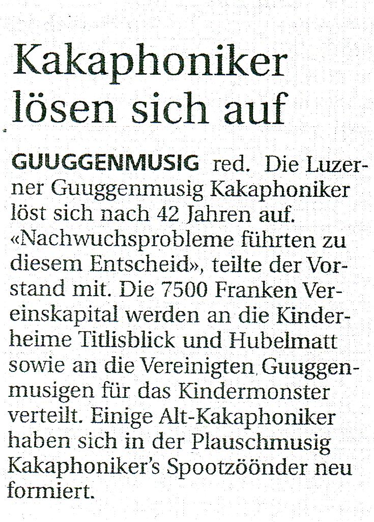 Bericht in der NLZ im Oktober 2010 - Kakaphoniker lösen sich auf