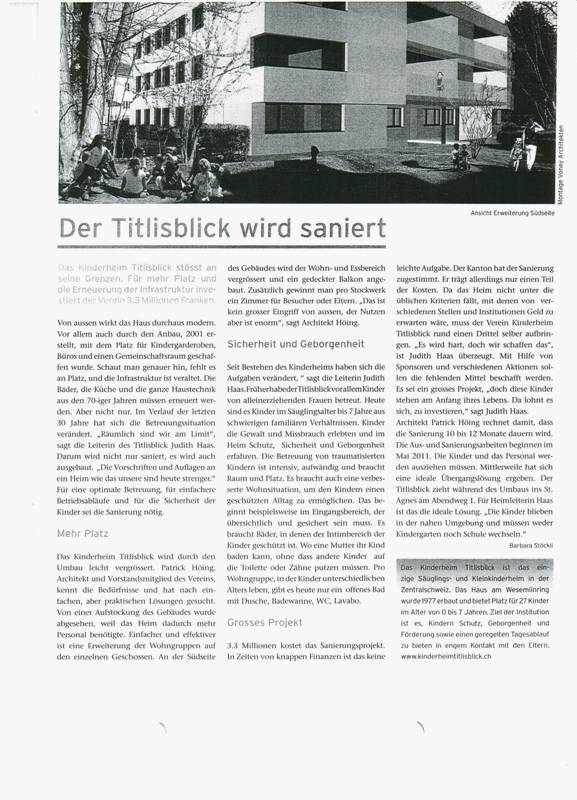 Bericht in der Quartierzeitung vom Frühling 2010 - Der Titlisblick wird saniert