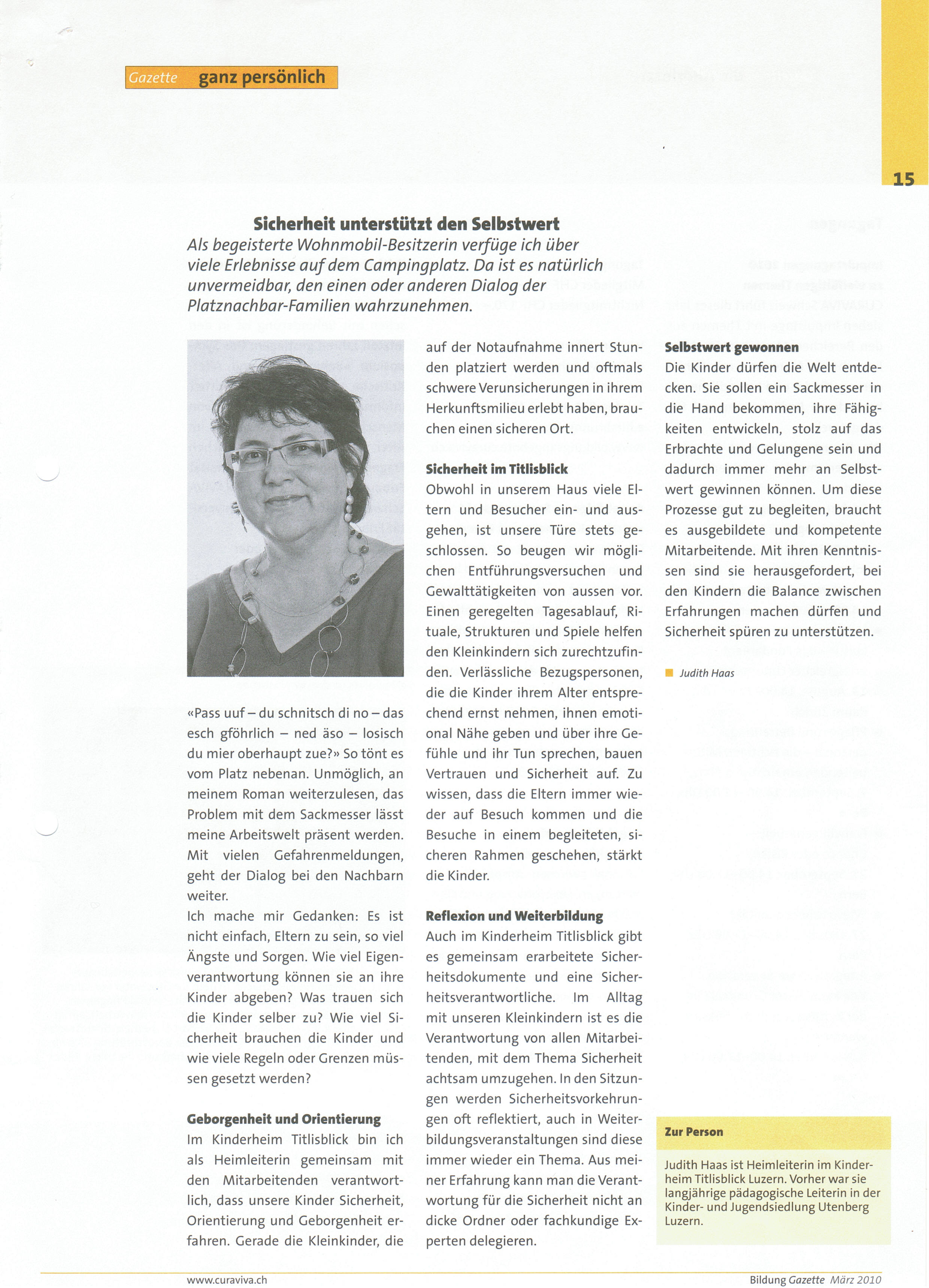 Bericht im Curaviva März 2010 - Sicherheit unterstützt den Selbstwert
