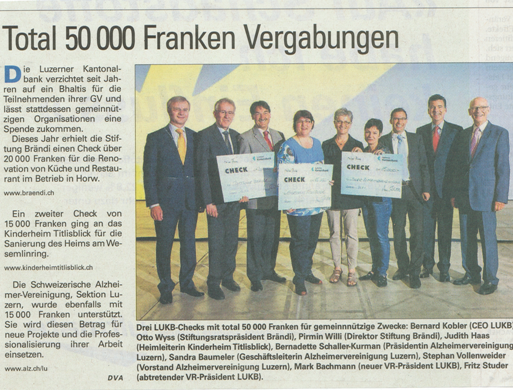 Bericht in der NLZ Sonntagszeitung vom 29.05.2011 - LUKB Checkübergabe