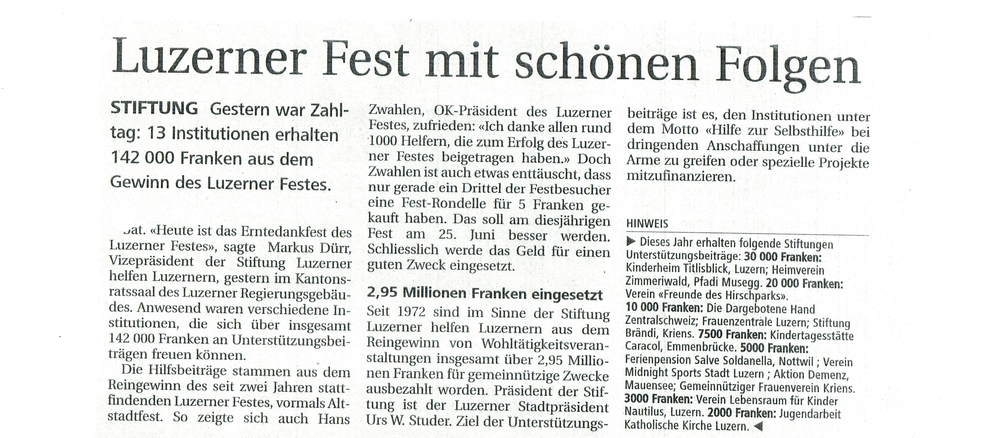 Bericht in der NLZ vom 22.05.2011 - Luzerner Fest mit schönen Folgen